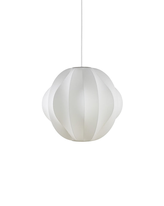 The Nelson Orbit Bubble Pendant has a striking presence with its recognizable but inimitable shape. This sculptural pendant light comes in two sizes and has a unique steel understructure. It also includes a ceiling plate and a 10-foot or 20-foot cord.