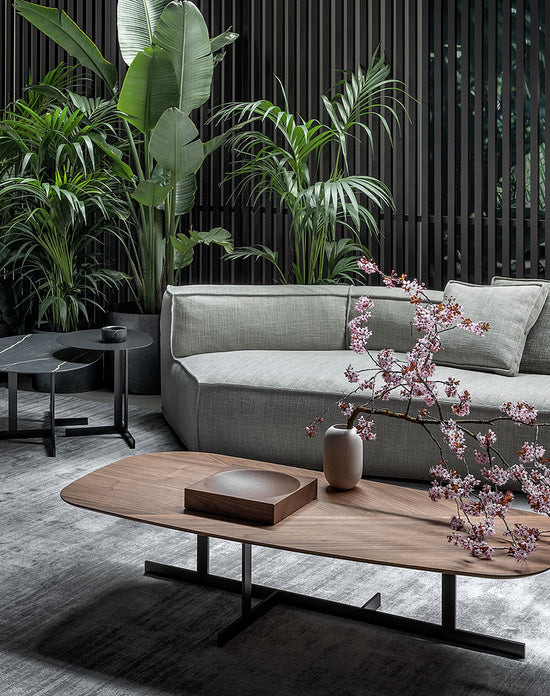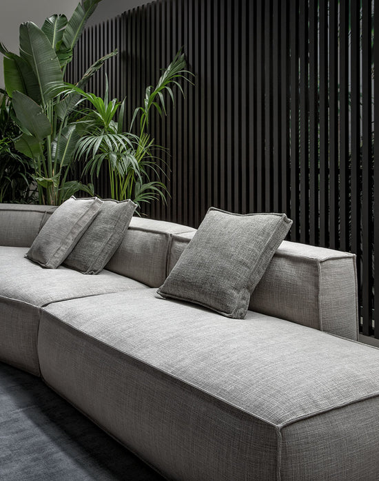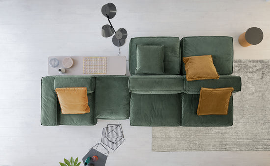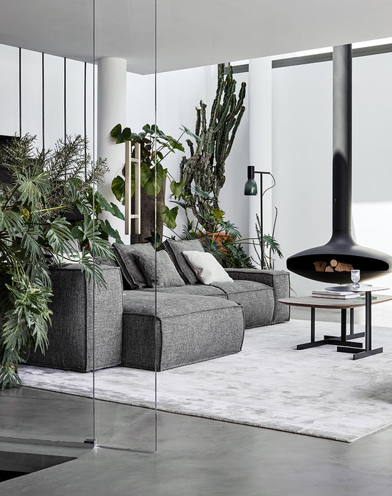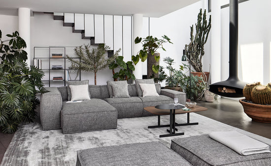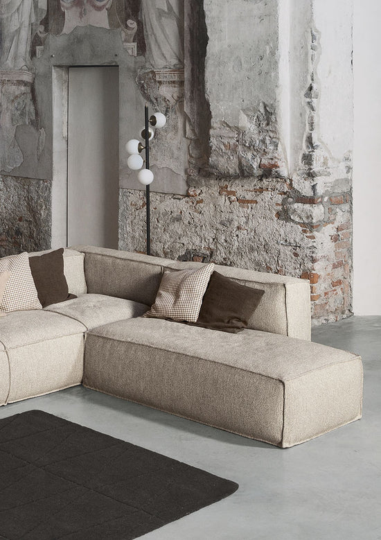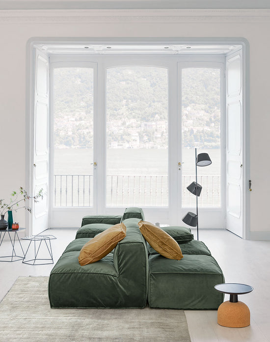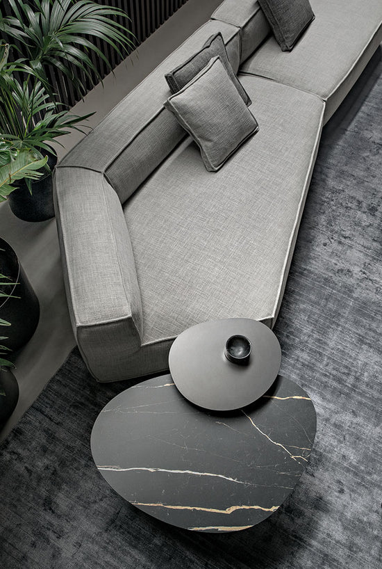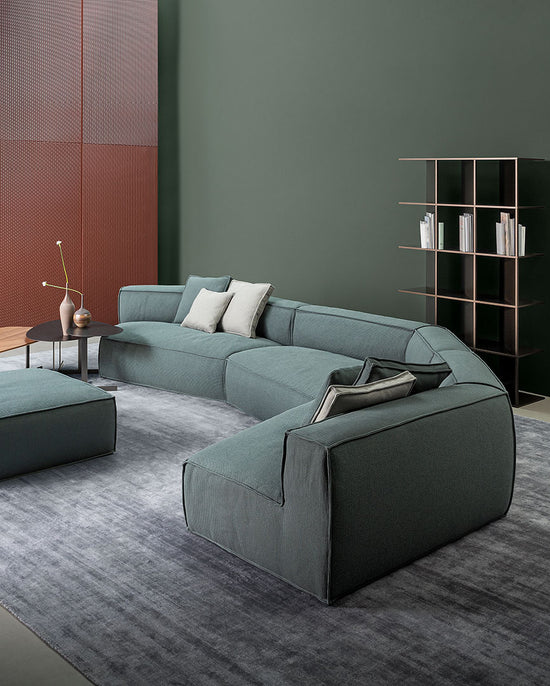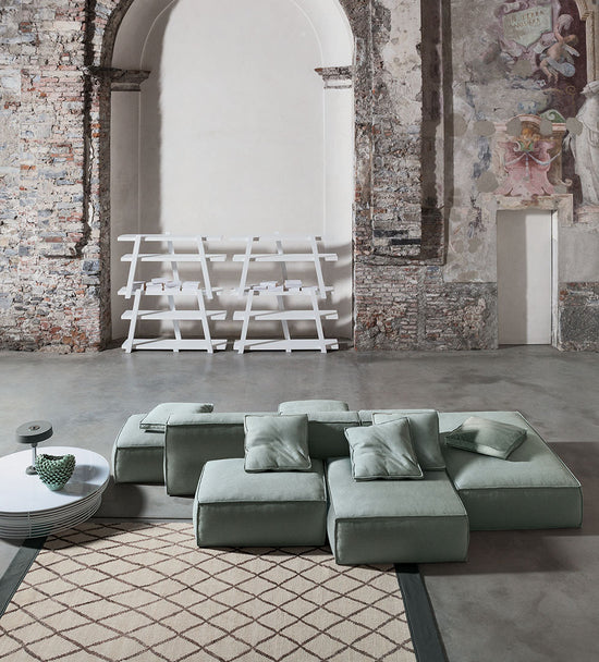 “Two-sided” design remains the distinctive element of the sofa’s architecture, which is perfectly expressed by the inclusion of the new armrests and poufs. The contours of the stitching, which surround the soft volumes of the seats, contrast with the more austere and geometric shapes of the frame with different seat depths: the result is a sofa that can adapt to any space and style requirement.