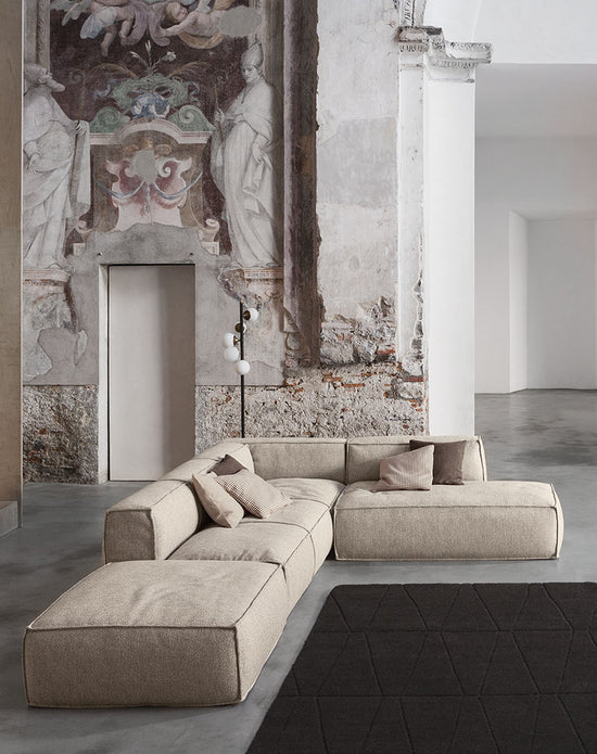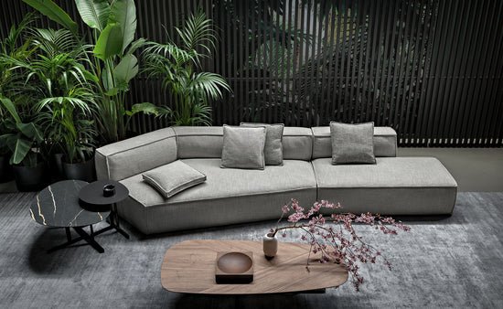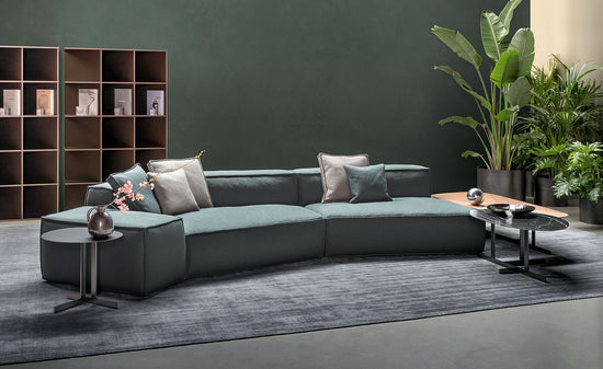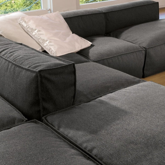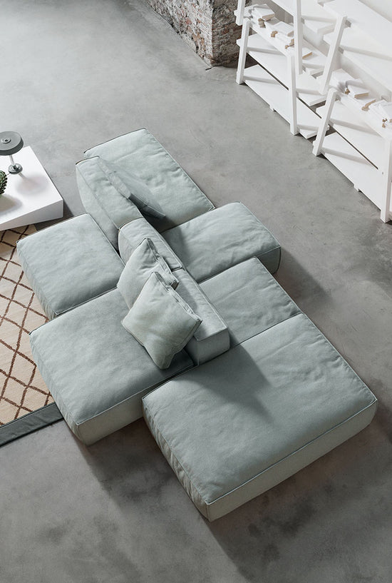 Great expressive value for a piece of furniture destined to stimulate our most creative and fanciful side; an enveloping softness which confers intense moments of relaxation day after day. Thanks to the many elements from which it is possible to choose, Peanut B is an extremely versatile sofa which adapts to every style or space requirement. Peanut B can also be arranged like an island and be placed at the centre of the room to create a space in which to socialize. There are also some elements available with a mechanism that allows the seat to be extended, for even more comfort. The upholstery, removable, is in fabric or leather, and can be chosen in a solid colour or with different colours and patterns for every module that composes the sofa, in this way offering a further opportunity of personalization.
