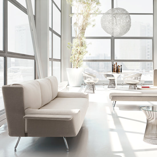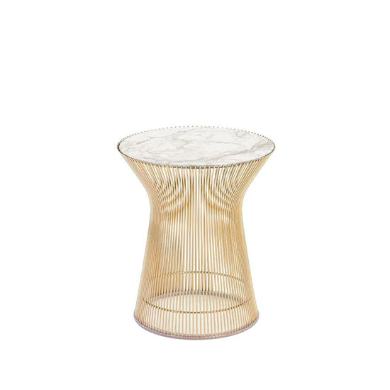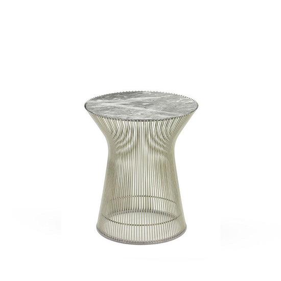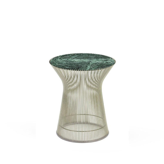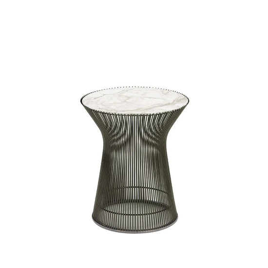 In 1966, the Platner Collection captured the “decorative, gentle, graceful” shapes that were beginning to infiltrate the modern vocabulary. The iconic side table is created by welding curved steel rods to circular frames, simultaneously serving as structure and ornament.