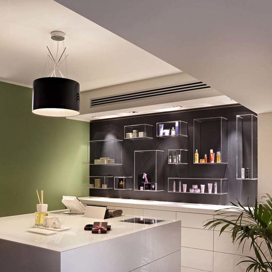 Inspiration behind the design: Offering a fresh perspective on an iconic shape, Rodolfo Dordoni designed his modern drum diffuser to resemble a lighthouse. “It is part lighthouse, part power pylon.”