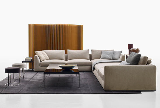 The Richard seating system stands out for its balanced and contemporary design, evocative of classic atmospheres. Its modularity is reflected by the presence of several elements, all in two depths: one for more formal and contained solutions, and the other for larger, more informal compositions.
