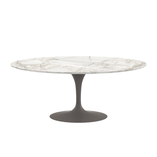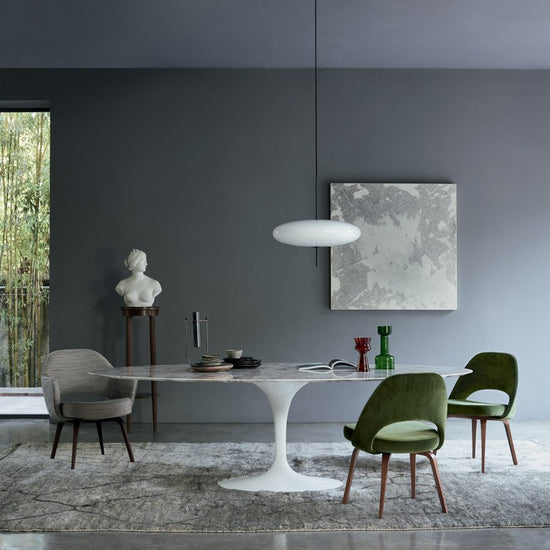 With the Pedestal Collection, Eero Saarinen resolved the "ugly, confusing, unrestful world" underneath tables and chairs. The collection is a defining accomplishment of modern design and a timeless addition to your home—a true classic. 72" table seats 6 people.