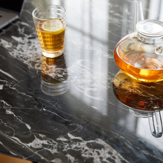 - Marble: Transparent polyester coating with polished or satin finish beveled edge