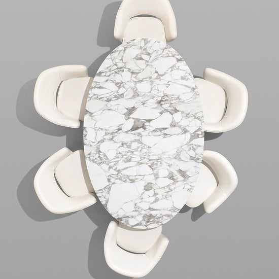 With the Pedestal Collection, Eero Saarinen resolved the "ugly, confusing, unrestful world" underneath tables and chairs. The collection is a defining accomplishment of modern design and a timeless addition to your home—a true classic. 84" table seats 6-8 people.