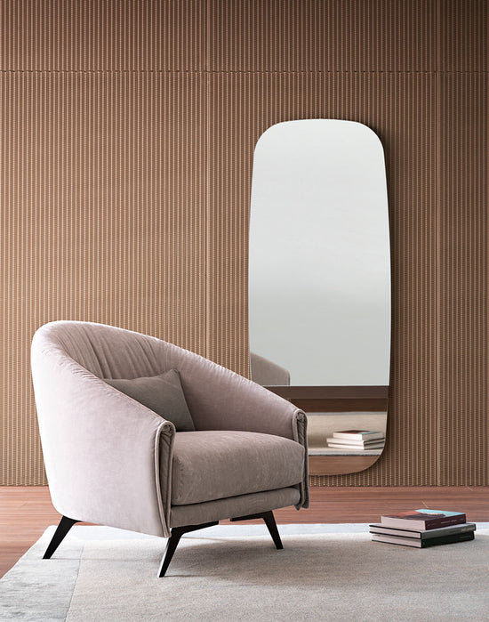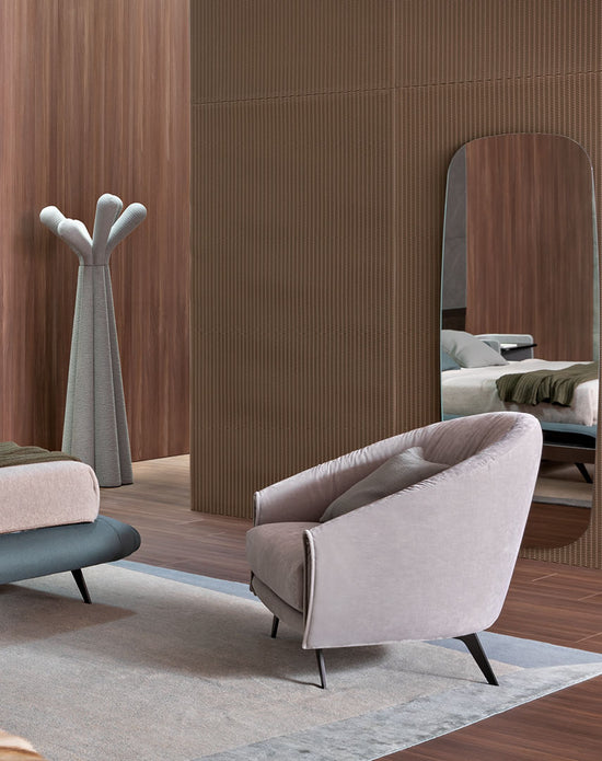 The Saddle armchair completes the eponymous line of upholstered furniture (sofa and bed) designed by Giuseppe Viganò, synonym of a contemporary and functional aesthetic.