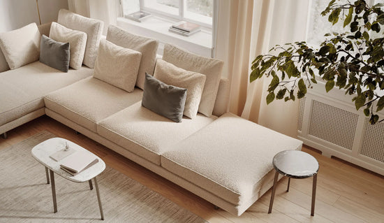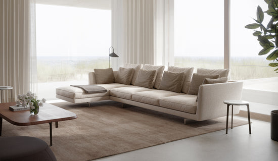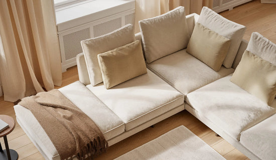 Fall into the layered softness of the Savoy sofa, a luxurious destination in the home.