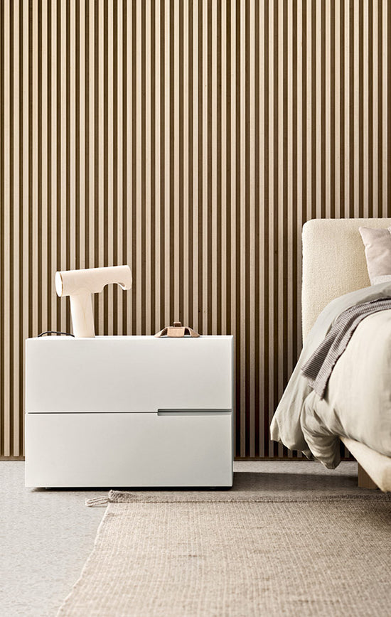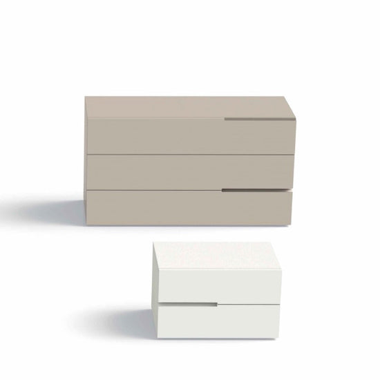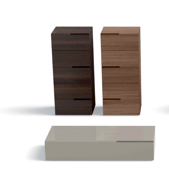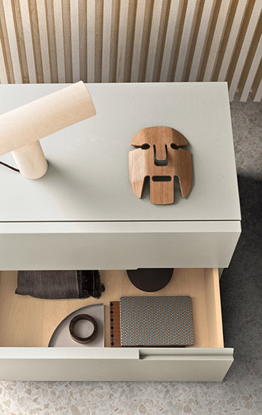 The Segno collection stands out for a simple and complete modularity. The fronts are designed with a special recessed handle. The invisible glide system allows for vertical and horizontal adjustment and is soft closing. The 'groove' handle can be placed on the left or on the right side of the drawer front.