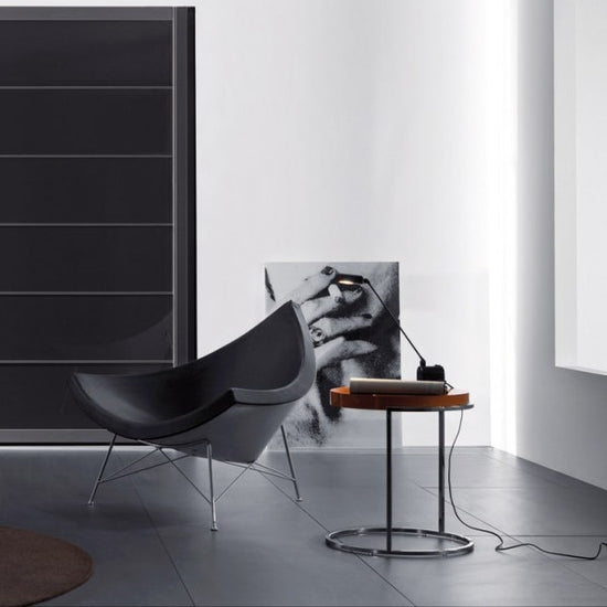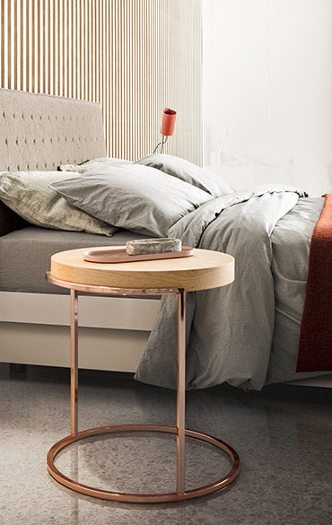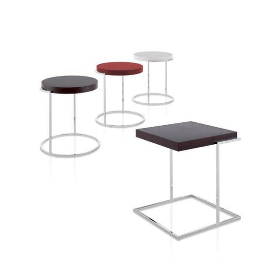 With a chrome structure and top in matt lacquered wood in the collection’s 28 colours, or in wood finish.