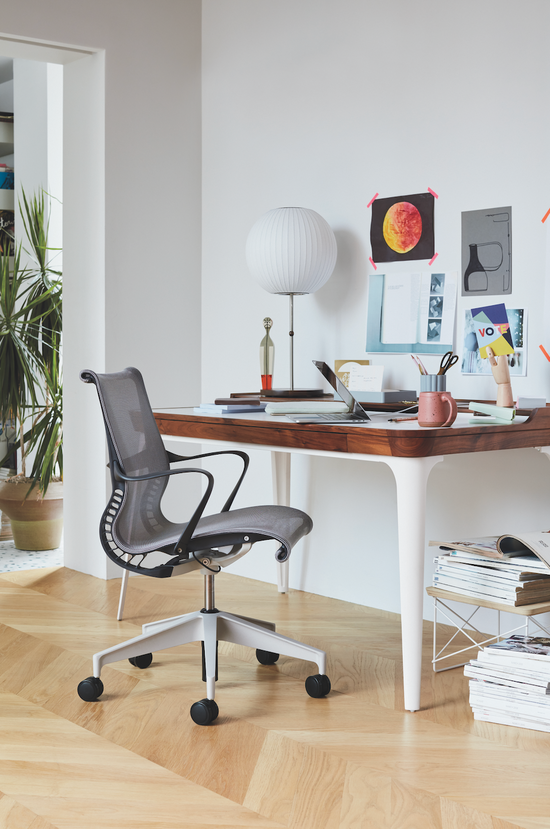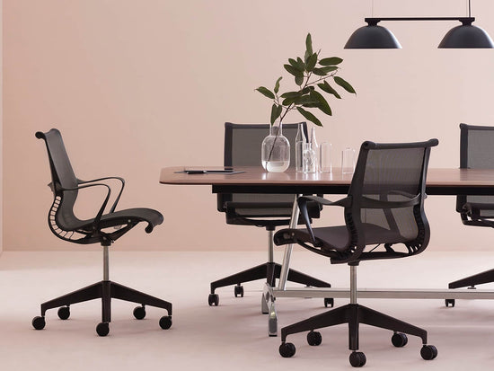 We increasingly expect to be able to work anywhere and everywhere. Designed as a response to our observations that people are spending a lot less time sitting in one spot, this multipurpose office chair provides comfort the second you sit down without requiring any adjustments. Setu is a responsive office chair featuring a Kinematic Spine that intuitively balances resistance and ease. It's simple yet effective design results in an airy, lightweight chair that still supports up to 300 pounds.