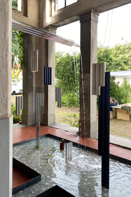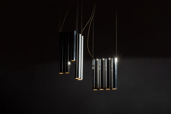 The Silo collection inhabits many worlds at once, creating a striking metaphor for duality. Mysterious yet inviting, the true magic lies in how its rhythmic curves shape light and space around it. Made using custom aluminum extrusions, the modular uplight-downlight creates a theatrical yet sleek composition.