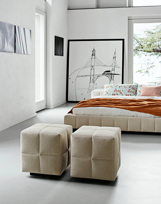 A design choice that privileges modern geometric shapes, playing with the volumes of the various elements. Thanks to the upholstery on every side, Squaring can perfectly be positioned in the middle of the room.