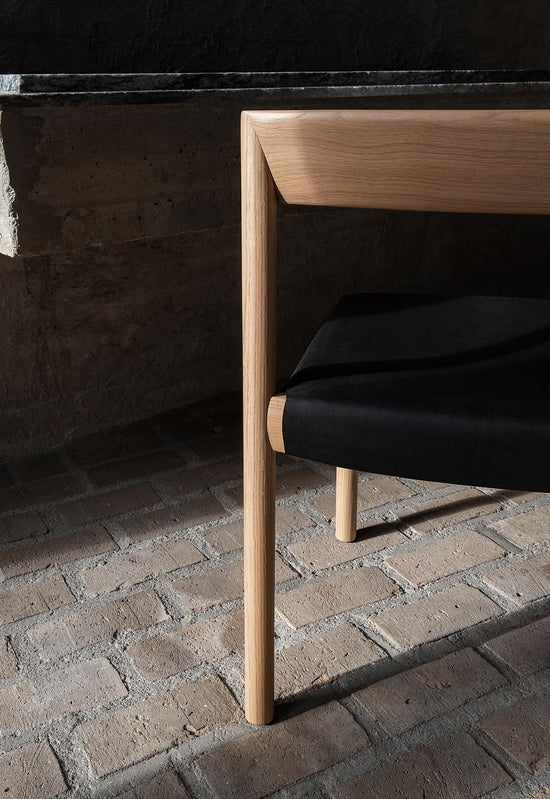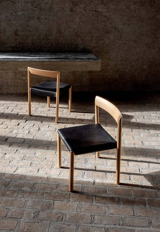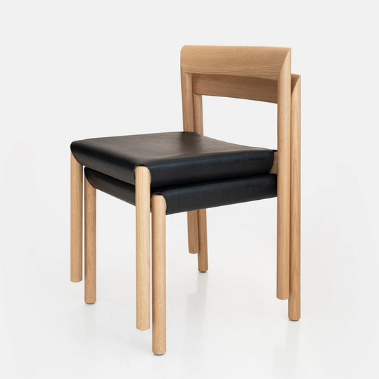 Stax is an innovative dining chair that is functional and beautiful. Mitered corners on the solid wood frame give the appearance of a continuous wood grain back.