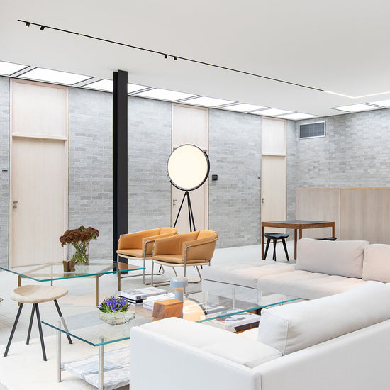 The serene, harmonious glow of the moon inspired this innovative and first-of-its-kind design from artist Jasper Morrison. Using revolutionary Edge Lighting Technology, the Superloon combines maximum performance and efficiency with visual comfort.