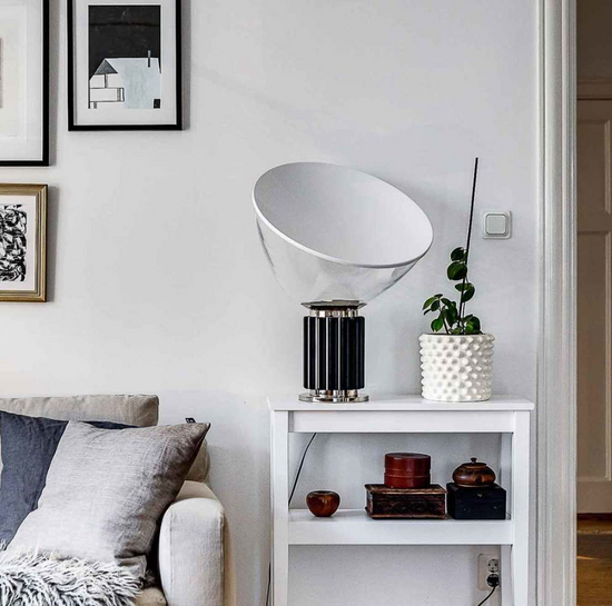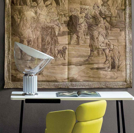 The Castiglioni brothers often created designs that challenged our perspective, and the Taccia, which gives the illusion of an upside-down hanging lamp, is an inspired example of that. This new, smaller version is approximately half the size of the original design created in 1962.