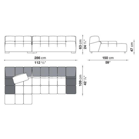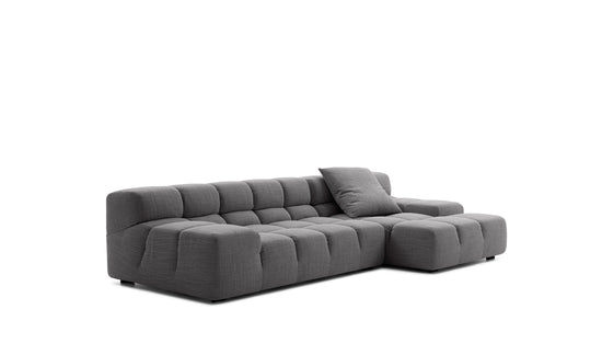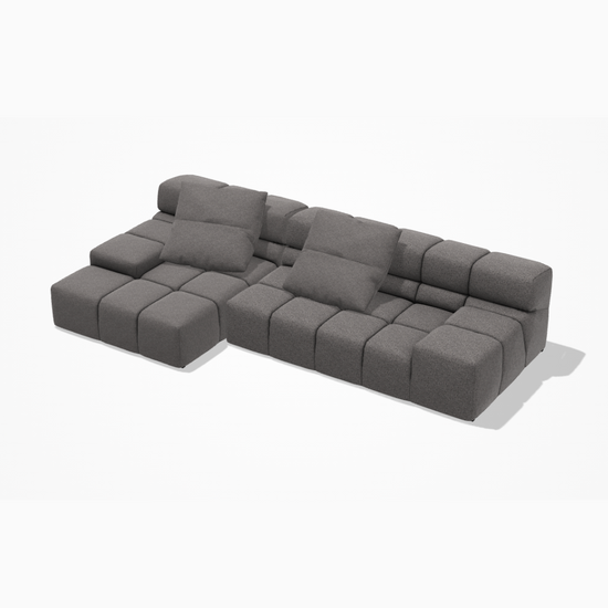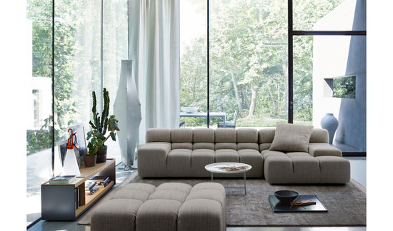 The Tufty-Time modular sofa can be ordered in endless configurations and upholstered with the entire B&B Italia textile and leather range, offering countless options.