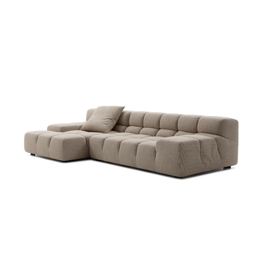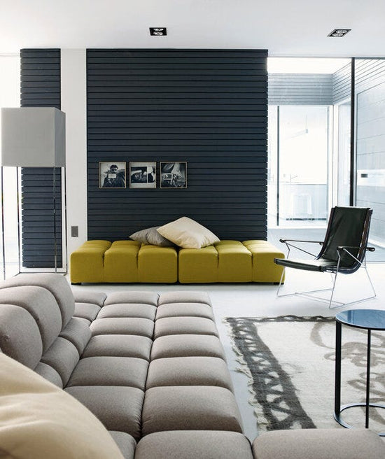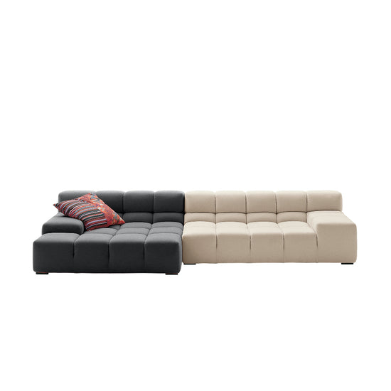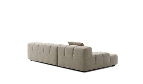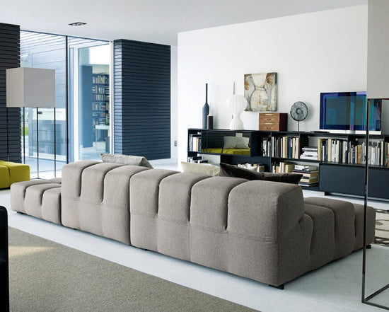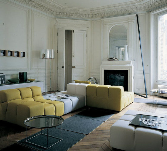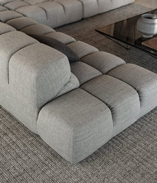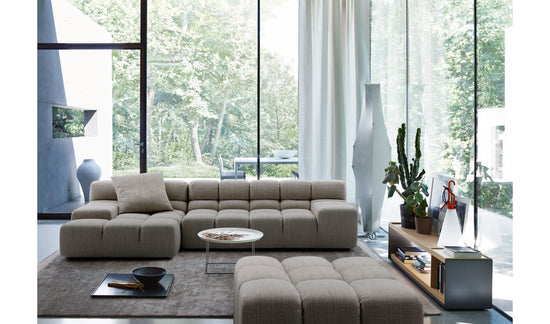 The Tufty-Time sofa series, one of B&B Italia’s most consolidated successes, finds effective answers to the themes of modularity, comfort and removable covers. The Tufty-Time modular system starts with an ottoman as the basic piece, which is then accompanied by central, corner and terminal elements with a low or high armrest. The elements are used to invent traditional sofas, sofas with a chaise lounge, corner sofas and island elements that provide a 360° seating solution.