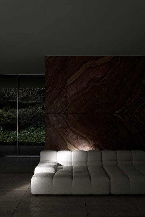 Cozy in its more accentuated depth, Tufty-Time becomes a meeting place, a welcoming refuge where people can just relax. With its fabric or leather upholstery, Tufty-Time offers a more contemporary take on the traditional Chesterfield and capitonné sofas, with a freer and more informal lifestyle.
