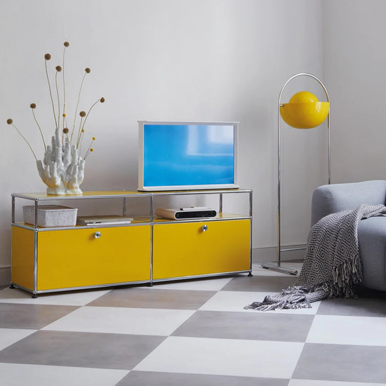 Designed by Swiss architects Fritz Haller and Paul Schaerer in 1963. Made from powder-coated steel and chrome-plated steel tubes, the USM Haller system is built to last for generations and adapt as your needs change. Made in Switzerland.