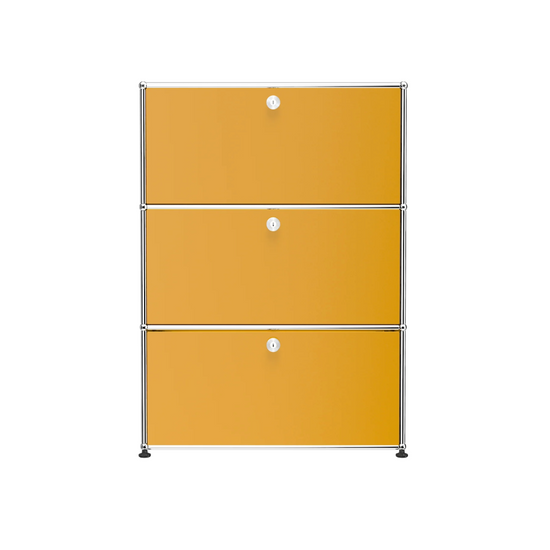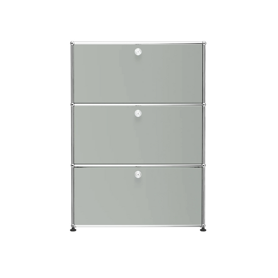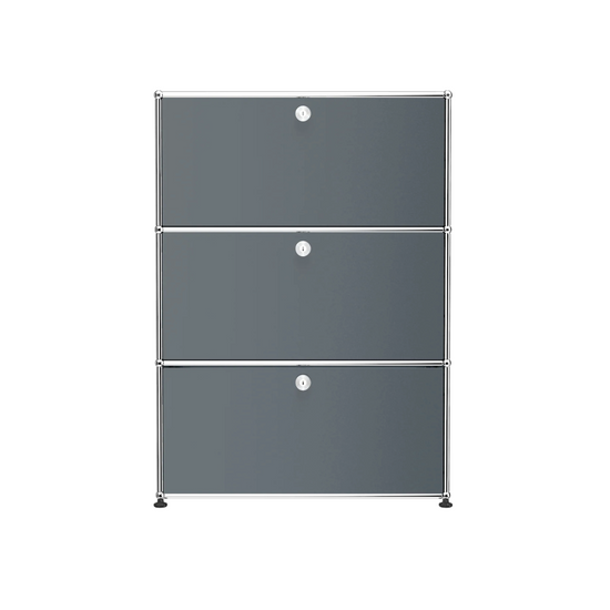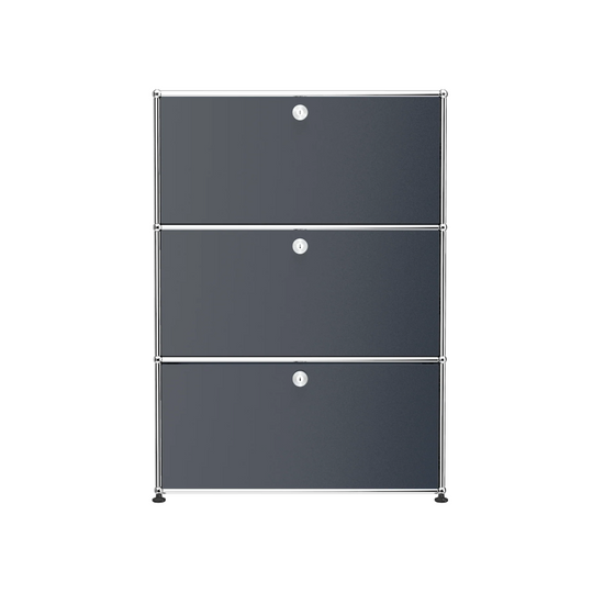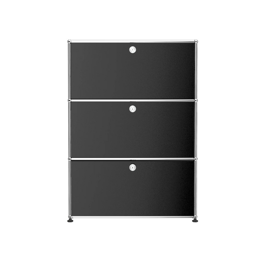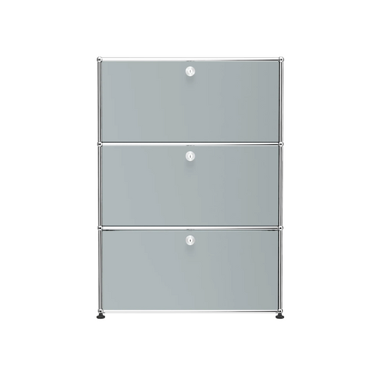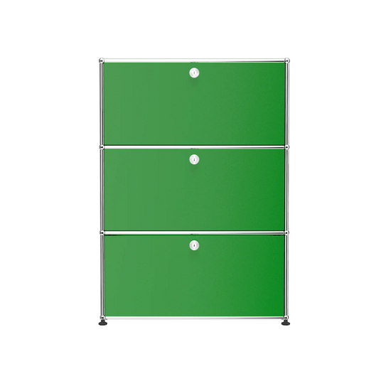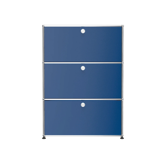 A versatile and functional storage credenza with two top drop-down doors and one bottom drawer. Available in 14 standard surface colours.