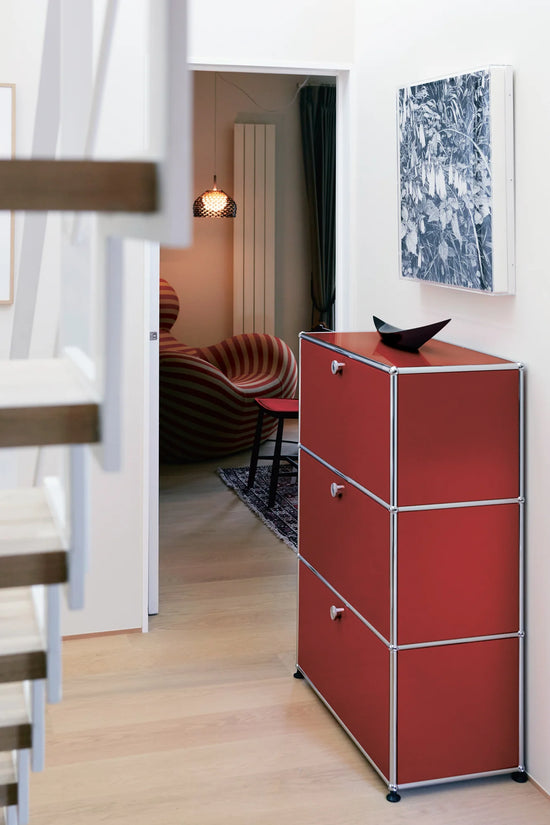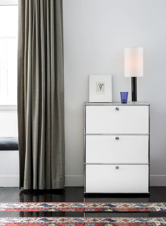Designed by Swiss architects Fritz Haller and Paul Schaerer in 1963. Made from powder-coated steel and chrome-plated steel tubes, the USM Haller system is built to last for generations and adapt as your needs change. Made in Switzerland.
