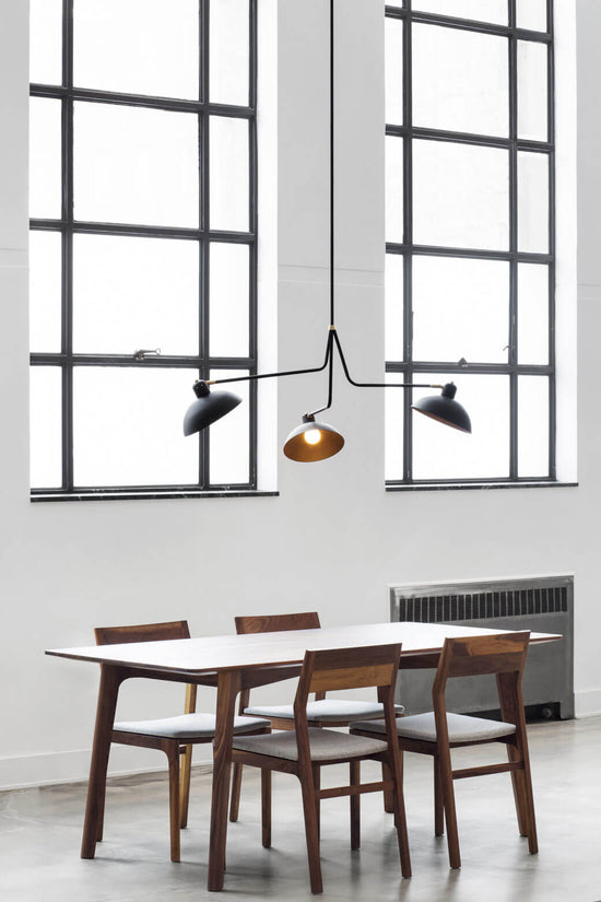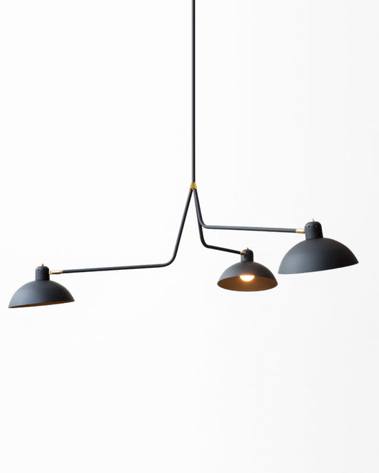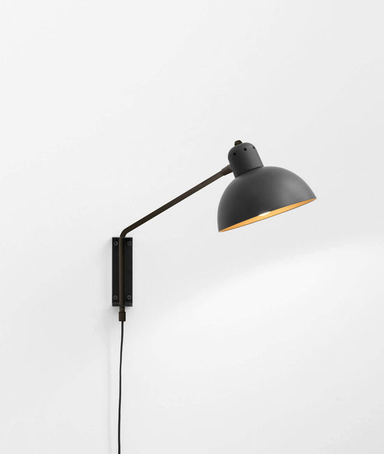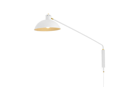 The main feature of the Waldorf Collection combines an open hemispherical shade with a cylindrical socket cover. This composite shade is deployed in suspension and wall-mounted configurations with natural brass and powder coated rods. Swivelling shades and other moving parts add functional flexibility to the crisp, streamlined forms of this collection.