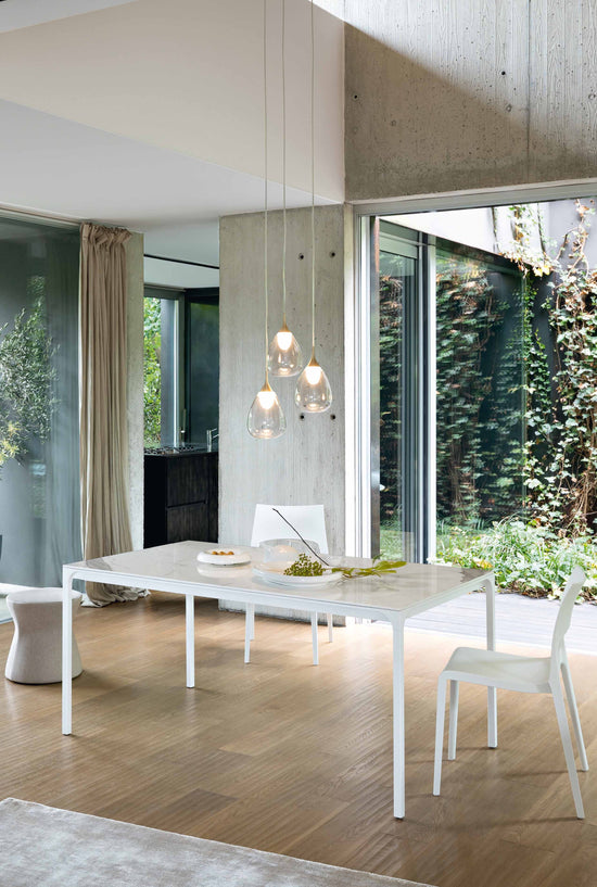Born from the collaboration between Bonaldo and Studio Marconato & Zappa, the Zen table is an essential design element, however, with a strong impact. A simple table, clean in its shapes, with modern lines that adapt perfectly to any type of environment, from the most traditional to the most contemporary one. The thin, slender and resistant shapes and the possibility of extending the top make it a table suitable for both the kitchen and office areas.