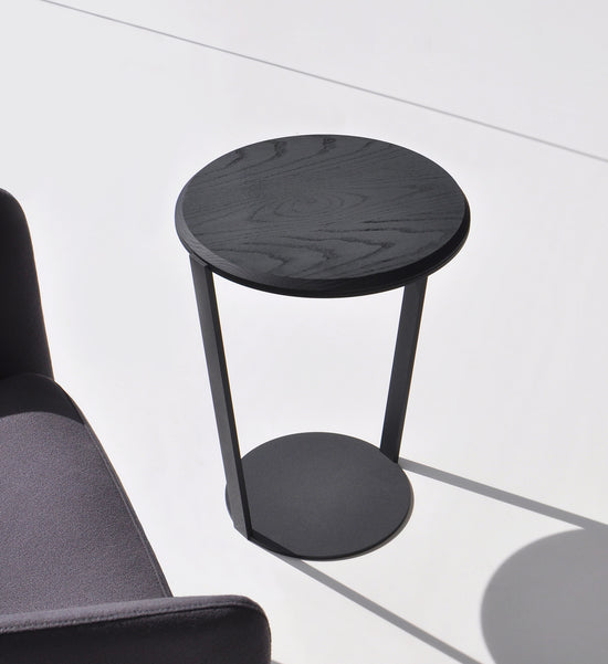 A beautiful side table that nestles comfortably next to upholstered sofas or lounge chairs. Around is available in three solid wood top options and is completed by a solid steel frame.