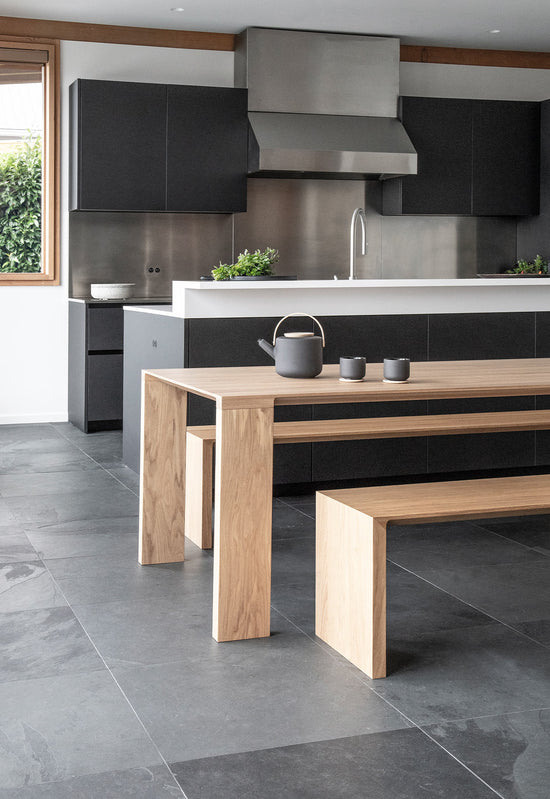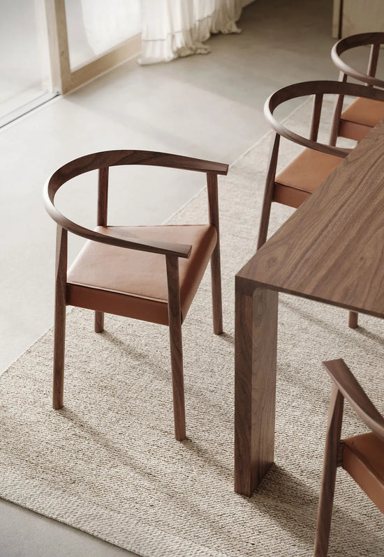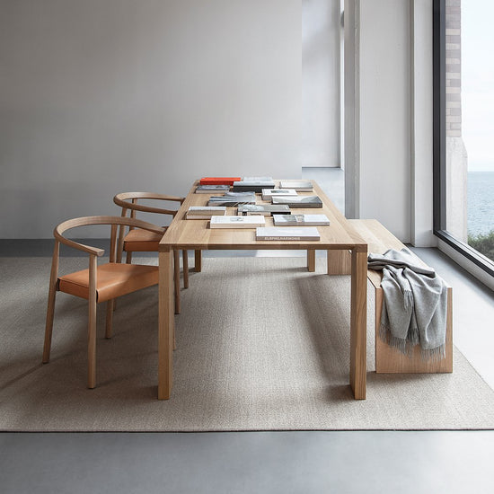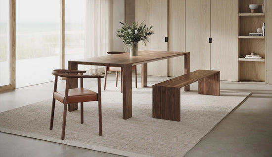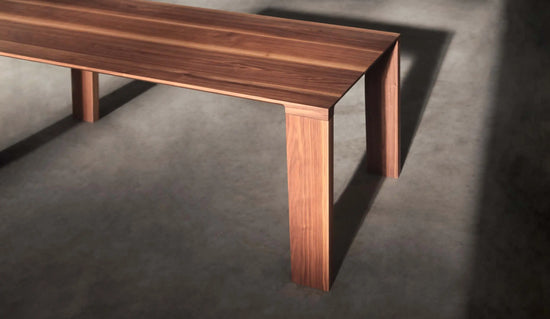 Radii is a solid wood dining table with subtle detailing that lends refinement to its simple appearance. Available in both White Oak or Walnut.