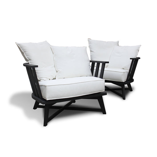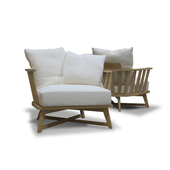 Discover the Simon armchair, a refined Italian interpretation of classic Scandinavian style. Its solid wood and veneer structure ensures uncompromising sturdiness, while the seat's foam padding guarantees optimum comfort. Back cushions, available in feather and down or microfiber, offer the ultimate relaxation experience.