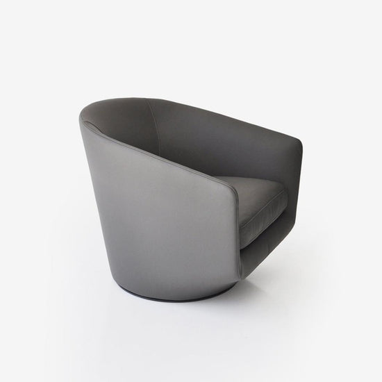 U Turns sits upon a discrete circular metal base that rotates smoothly through 360º. An internal steel frame and injection molded foam create engineered comfort and a tailored appearance.
