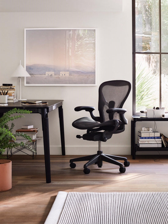 Aeron changed the way everyone thought about office chairs—from its revolutionary look to its advanced ergonomics to the fact that it's 94 percent recyclable. Instantly adaptable to all the motions you go through every day while seated, Aeron provides healthy comfort and balanced body support. Its innovative suspension and easy-to-use adjustment controls let the chair move effortlessly as your body moves.