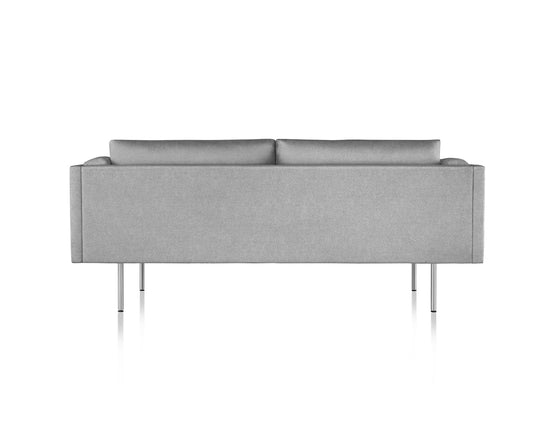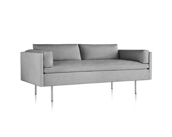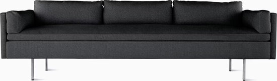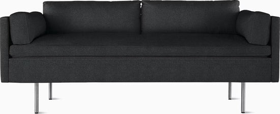 Inviting, versatile, and thoughtfully scaled, the Bolster Sofa for three delivers relaxed comfort and exceptional support. Set atop stainless steel legs, a slim pliable seat cushion adds softness and a loose, laid-back look. Supportive foam and fiber cushions are double zipped on the back and side to keep them in place.