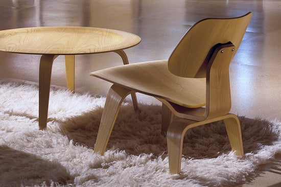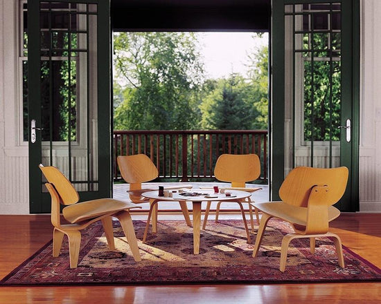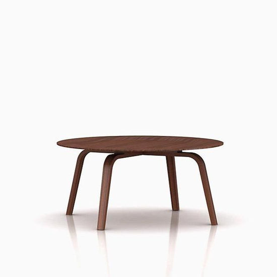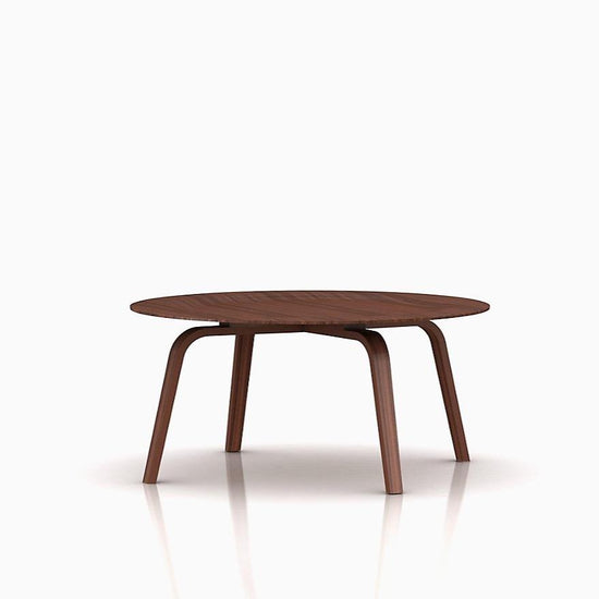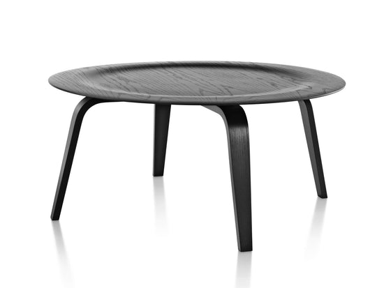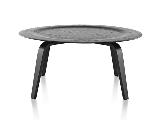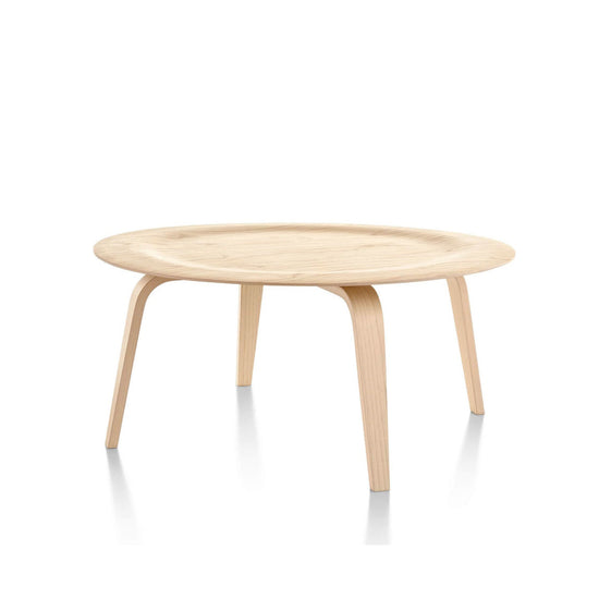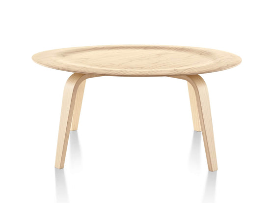 Formed by Charles and Ray Eameses’ breakthrough technique of molding lightweight plywood veneer into gently curved shapes, this table makes a strikingly simple centerpiece in any space. Available in a range of veneers, its round, slightly indented top and curved wood legs are an eloquent example of early Eames design.