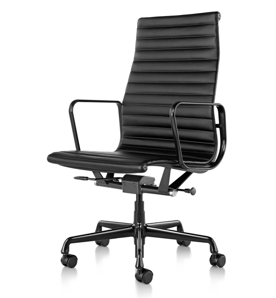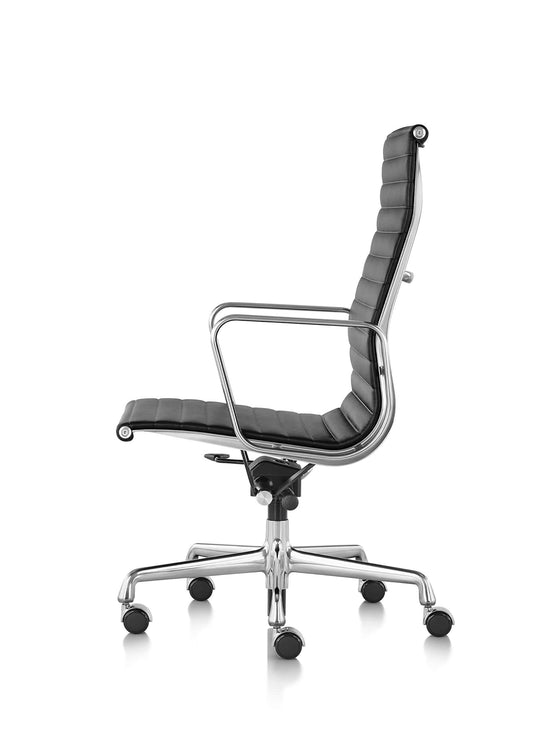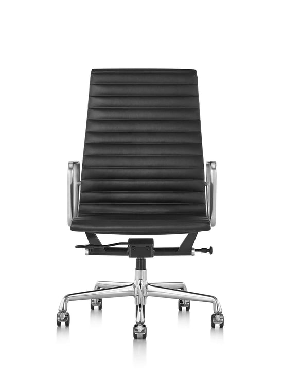 Equally classic and contemporary, the Eames Aluminum Group Executive Chair is lithe, with a graceful silhouette, and an innovative suspension system for support. The pneumatic lift and tilt swivel mechanism allow for personal adjustments.