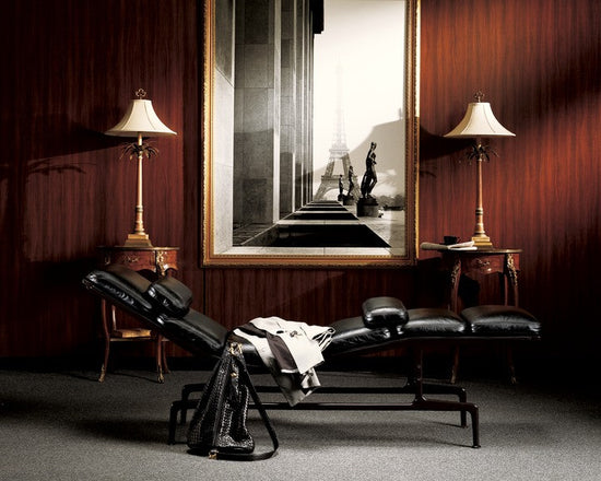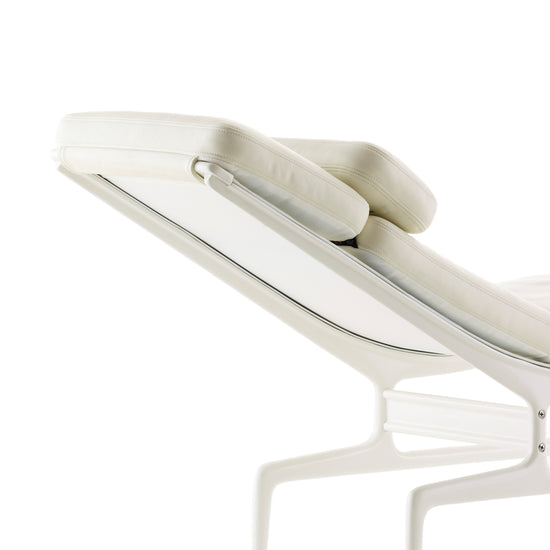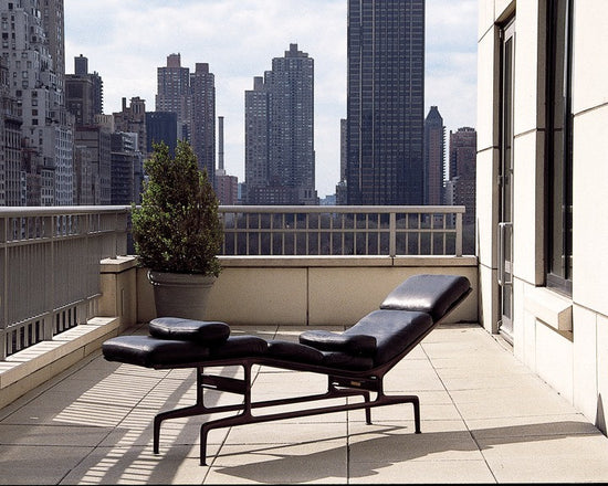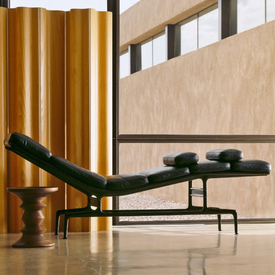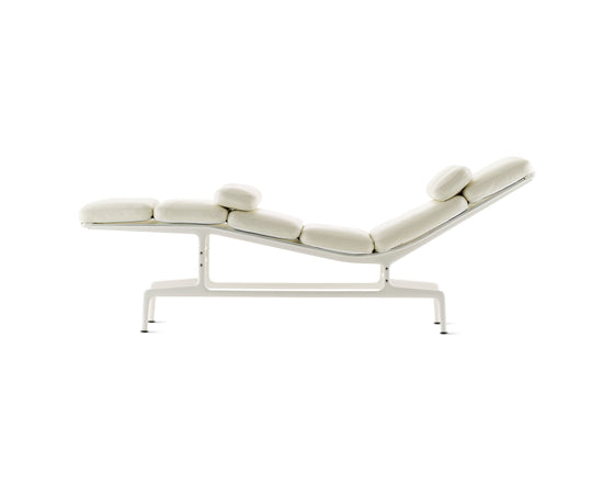 The Eames Chaise is soft, comfortable, and just 18 inches wide. When you lie on it, you naturally fold your arms over your chest. Should you doze off, your arms soon fall to your sides, waking you up. It's a beautiful place to relax for a spell in a study, den, or executive office.