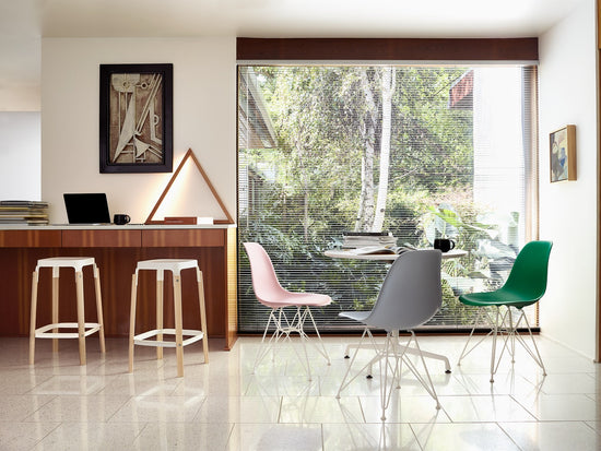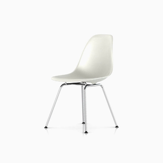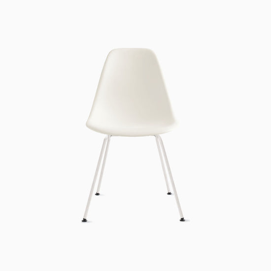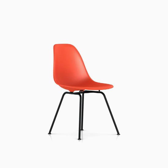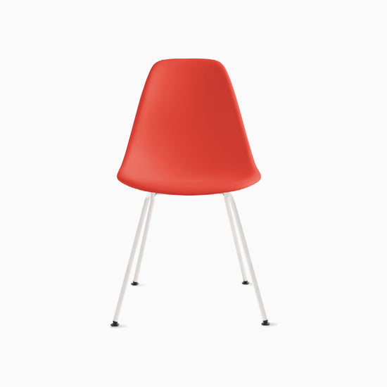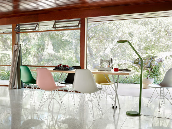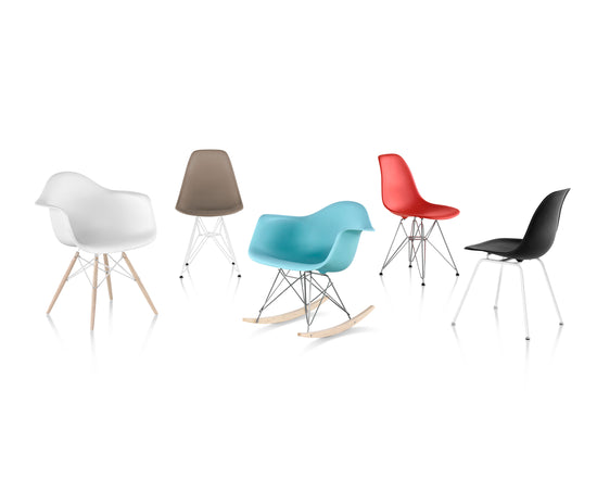 Charles and Ray Eames realized their first successful, single-shell form in 1950 with the Molded Fiberglass Chairs. However, when the environmental risks associated with fiberglass production became more widely understood, the decision was made to discontinue fiberglass shell production until a more suitable material could be found. In 2001, Herman Miller reintroduced the Molded Plastic Chair in polypropylene. In addition to being 100 percent recyclable, the polypropylene shell chair's subtle matte texture offers a soft tactility as well as notable durability.