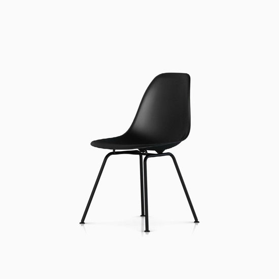 Eames Molded Plastic Chairs are available as side chairs or armchairs, and in a wide range of colours, including archival or new options. Armchair and side chair shells can be fully upholstered in a variety of textiles; side chair shells can be specified with an upholstered seat pad. A choice of bases rounds out your customization options.