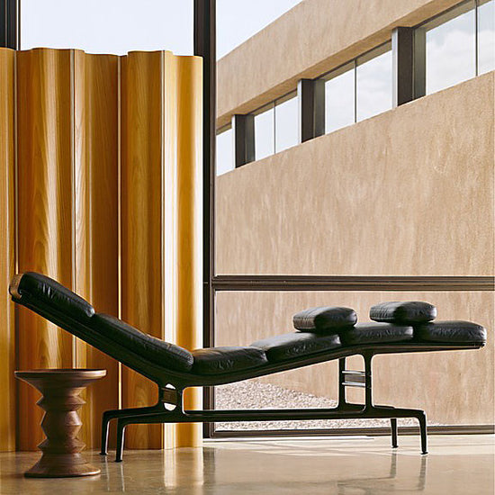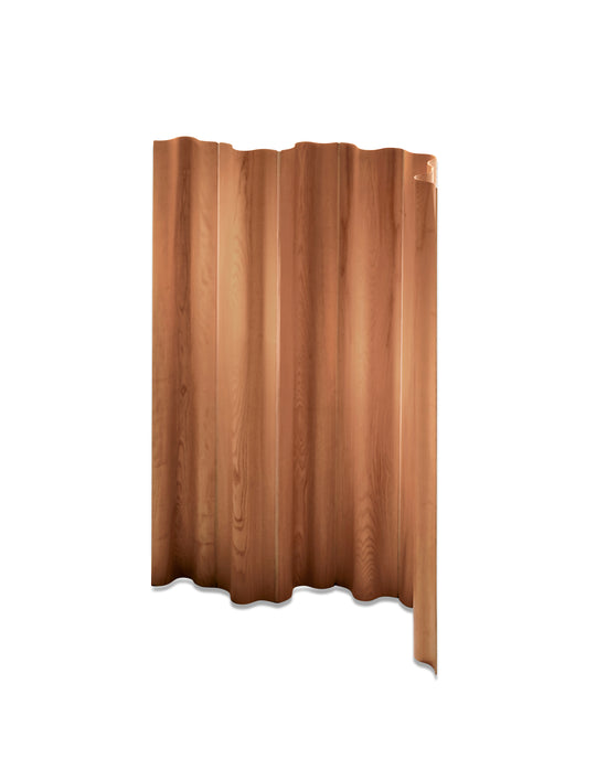 Designed to transform the space it occupies, the Eames Molded Plywood Folding Screen (1946) consists of six U-shaped molded plywood panels with natural veneer faces and walnut inner plies. Portable and lightweight, this modern plywood screen stretches to five feet wide and folds down for compact storage.