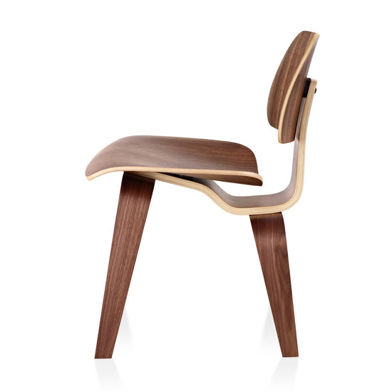 Hailed by Time magazine as the Best Design of the 20th Century, the iconic DCW or “Dining Chair Wood” (1946) began as an experiment in the Eameses’ apartment, where they were molding plywood in what they called the “Kazam! Machine.” The machine pressed thin sheets of wood veneer against a heated membrane that was inflated by a bicycle pump. Humble beginnings for what would become one of the world’s most widely recognized and highly coveted chairs.