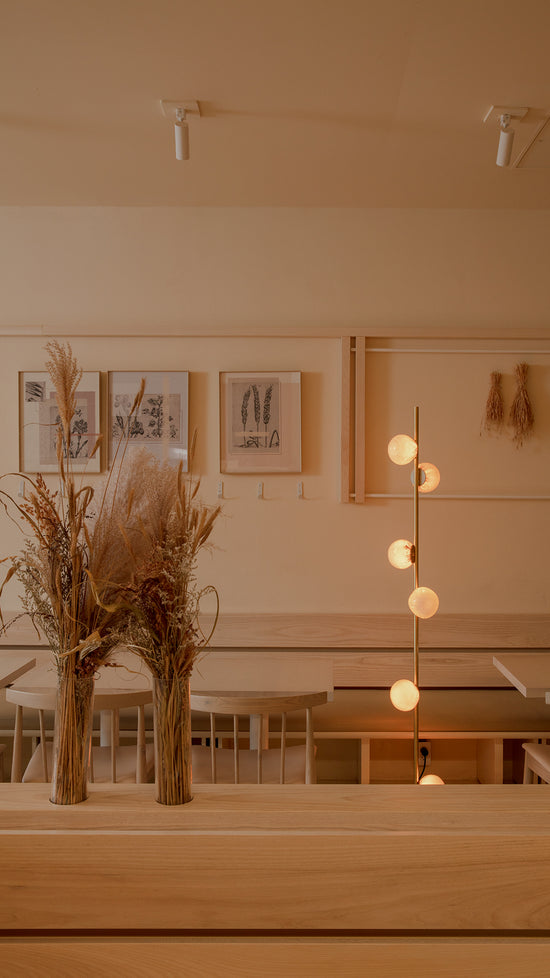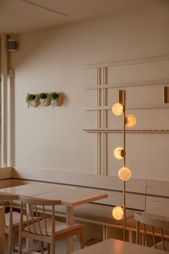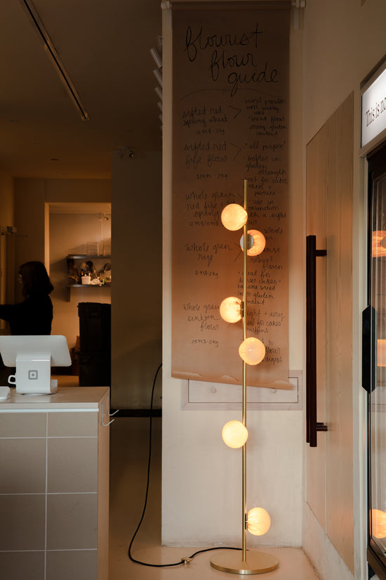 The stem floor system comes in unlacquered brass or black powder coated stem with a 350mm (13.8”) diameter base.