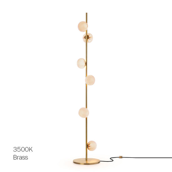 84 floor light comes with a 350mm (13.8″) diameter base. The semi-rigid black fabric cord includes a patented integral 360 degree dimming system housed within a sleek brass cylinder.