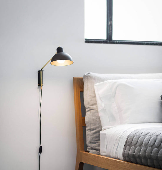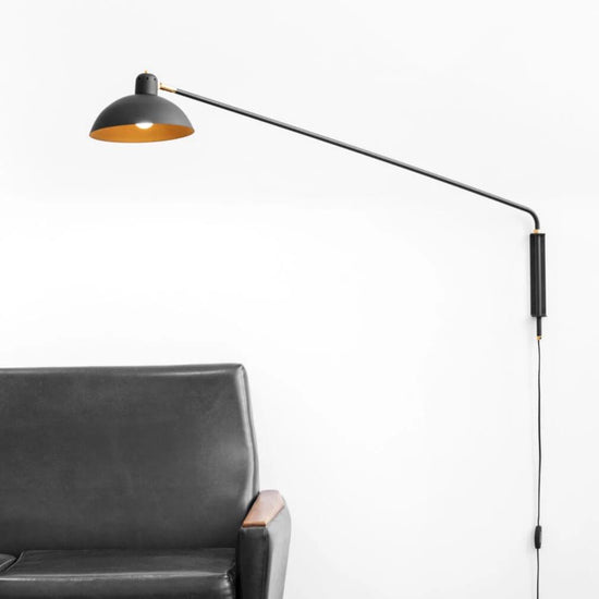 The main feature of the Waldorf Collection combines an open hemispherical shade with a cylindrical socket cover. This composite shade is deployed in suspension and wall-mounted configurations with natural brass and powder coated rods. Swivelling shades and other moving parts add functional flexibility to the crisp, streamlined forms of this collection.