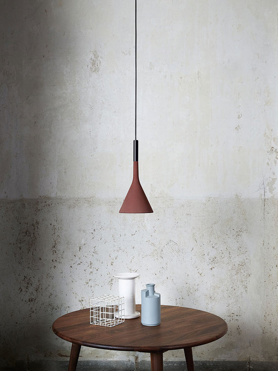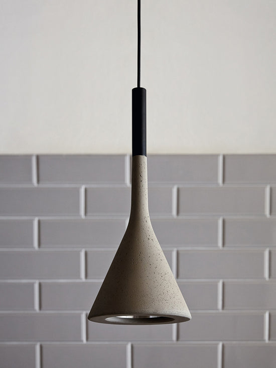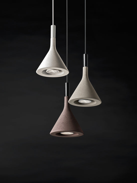 A special, exclusively formulated concrete plays the starring role in the Aplomb lamps, a model that combines sophistication with texture to cast a concentrated beam of light downwards.