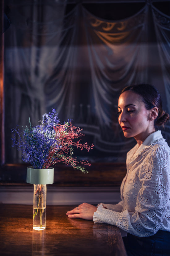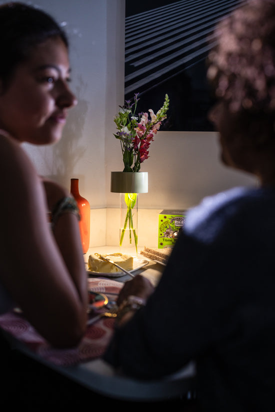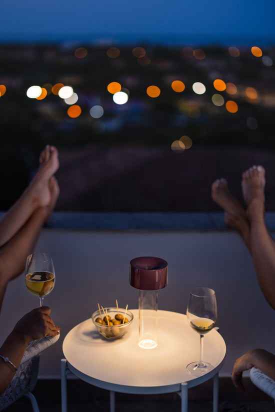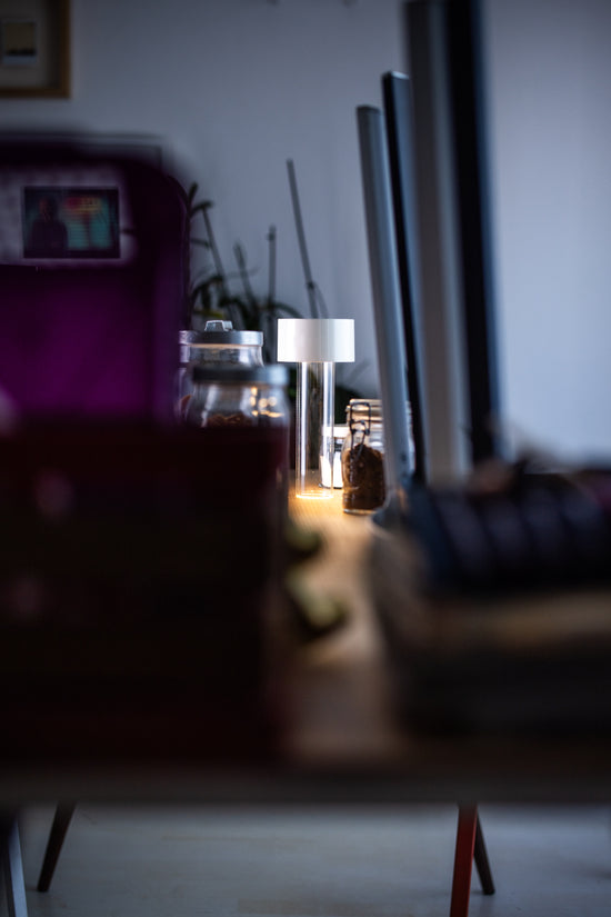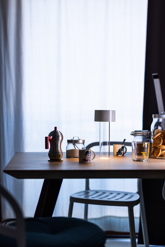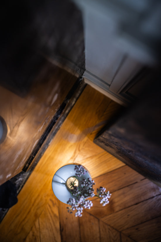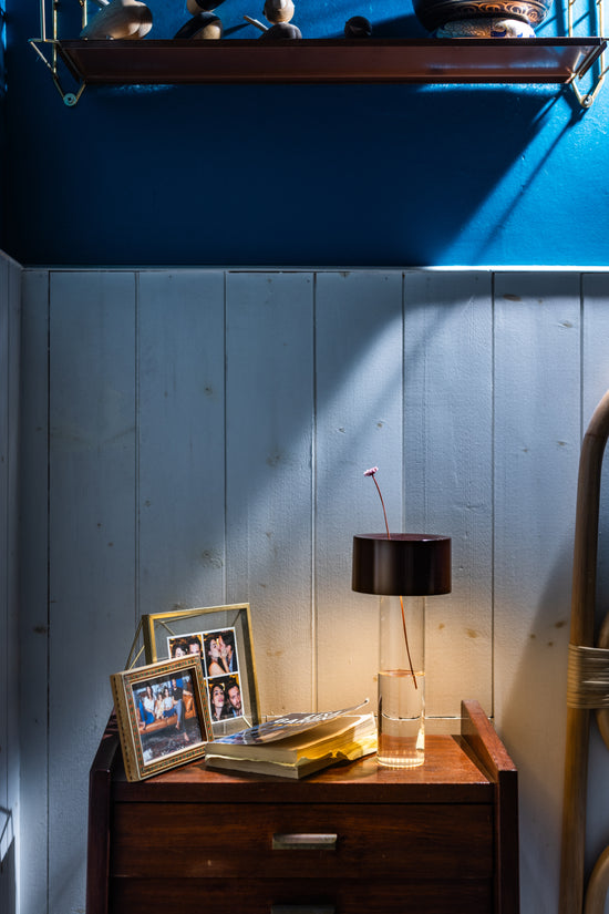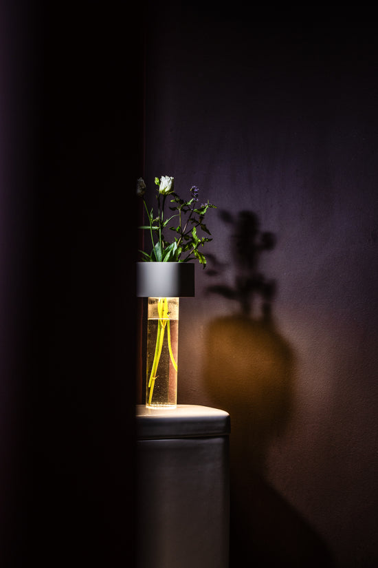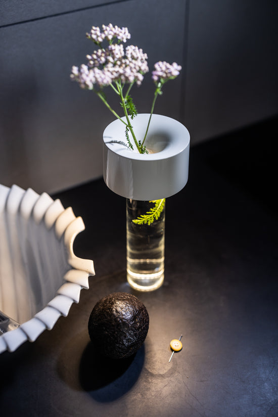 Transparency, lightness, and a poetic light that creates the atmosphere. Fleur is a rechargeable table lamp with dual functions: the more natural one of illuminating and the unexpected one of containing water and a fresh flower.