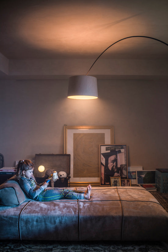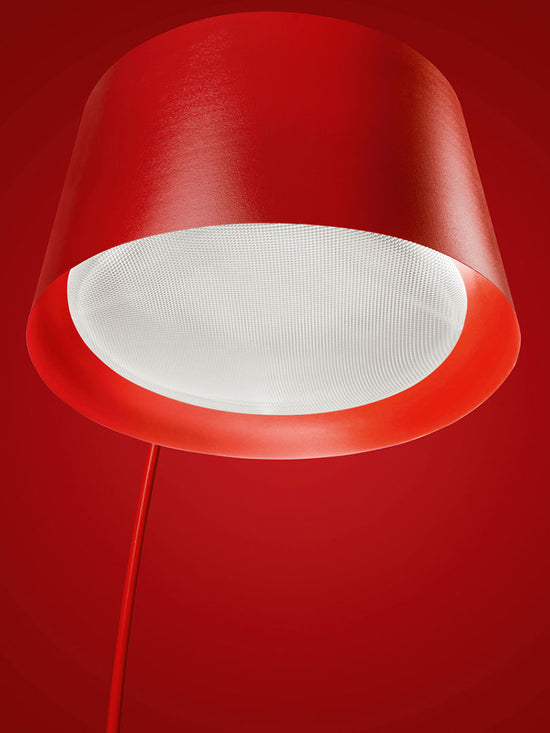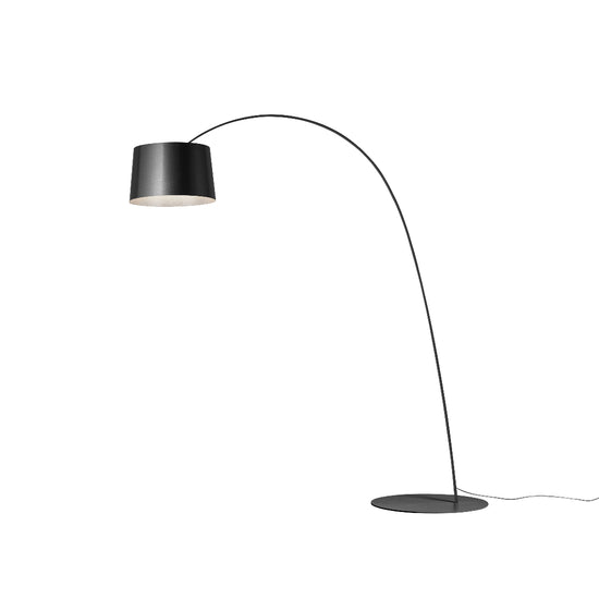 A fine arched line, a flexible sign which by magic suspends a large diffuser in mid-air: this is Twiggy, a floor lamp that meets multiple setting and lighting requirements.