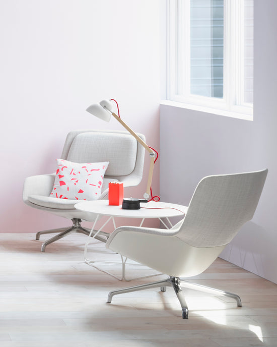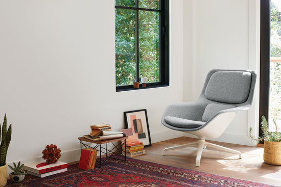 A distinct presence, sleek and contoured form, and premium comfort, Striad contemporizes the concept of a lounge chair. Inspired by the construction of a ski boot, German designers Markus Jehs and Jürgen Laub designed Striad in layers. The rigid outer shell provides stability and support while a softer inner shell provides contouring flexion to welcome the body.