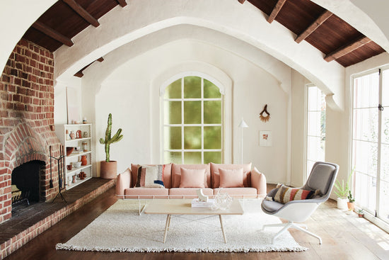 Thanks to its three-layer construction, the Striad Lounge Chair (2016) achieves that perfect balance of structure and comfort. It comprises a rigid outer shell merged with a natural-fiber inner shell; both are fully upholstered then topped with deep-set, dual-density cushions that add supple support.