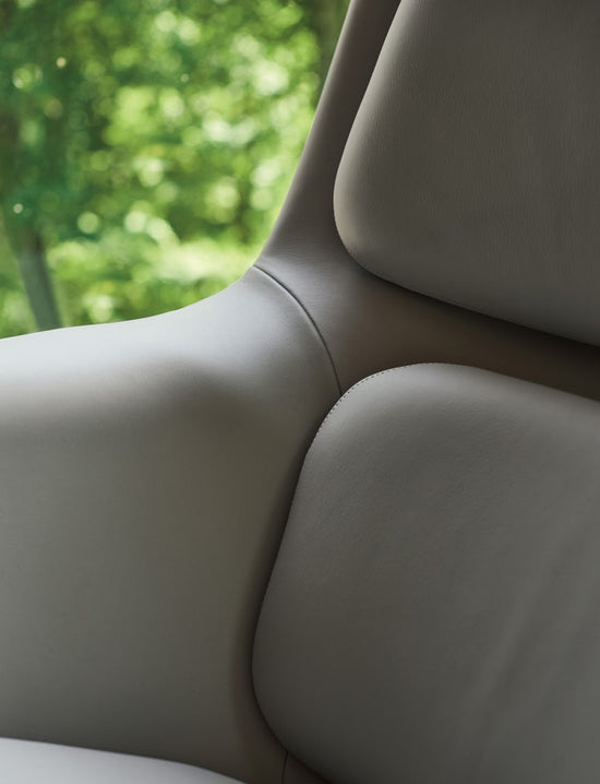 Inspired by the construction of high-performance ski boots, Stuttgart-based designers Markus Jehs and Jürgen Laub designed the Striad Lounge Chair and Ottoman in layers to deliver a premium experience of comfort. The outermost layer, a rigid shell, is merged with an inner shell constructed of a natural fiber composite material, which is then fully upholstered. Individually upholstered dual-density foam cushions form the third layer, resulting in an optimal combination of firm support and supple, pliable comfort.