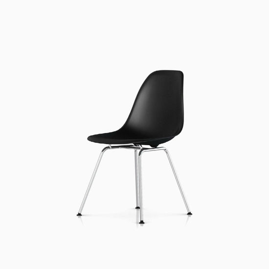Eames Molded Plastic Chairs are available as side chairs or armchairs, and in a wide range of colours, including archival or new options. Armchair and side chair shells can be fully upholstered in a variety of textiles; side chair shells can be specified with an upholstered seat pad. A choice of bases rounds out your customization options.